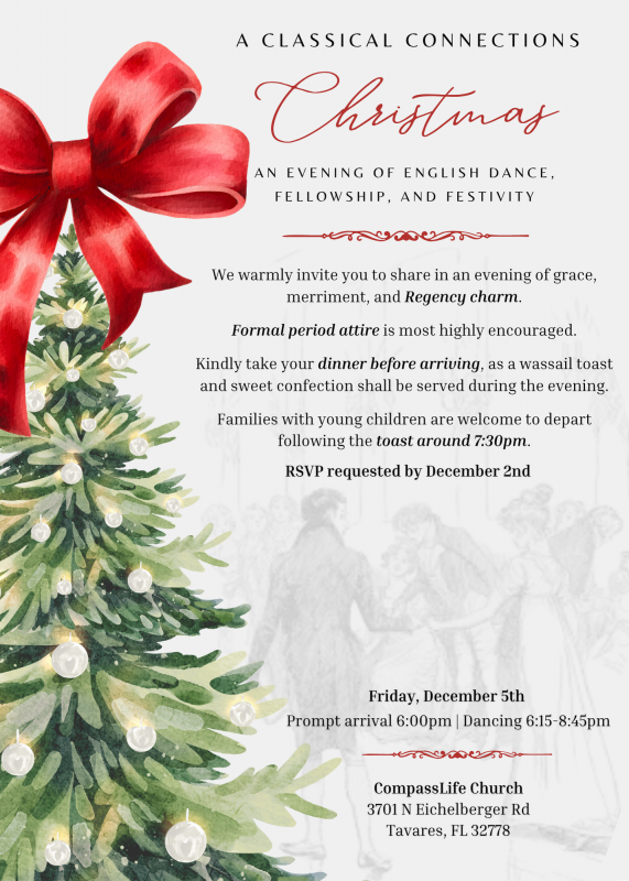 Join us as we delight in the charm of English country dances and the pleasure of one another’s company.